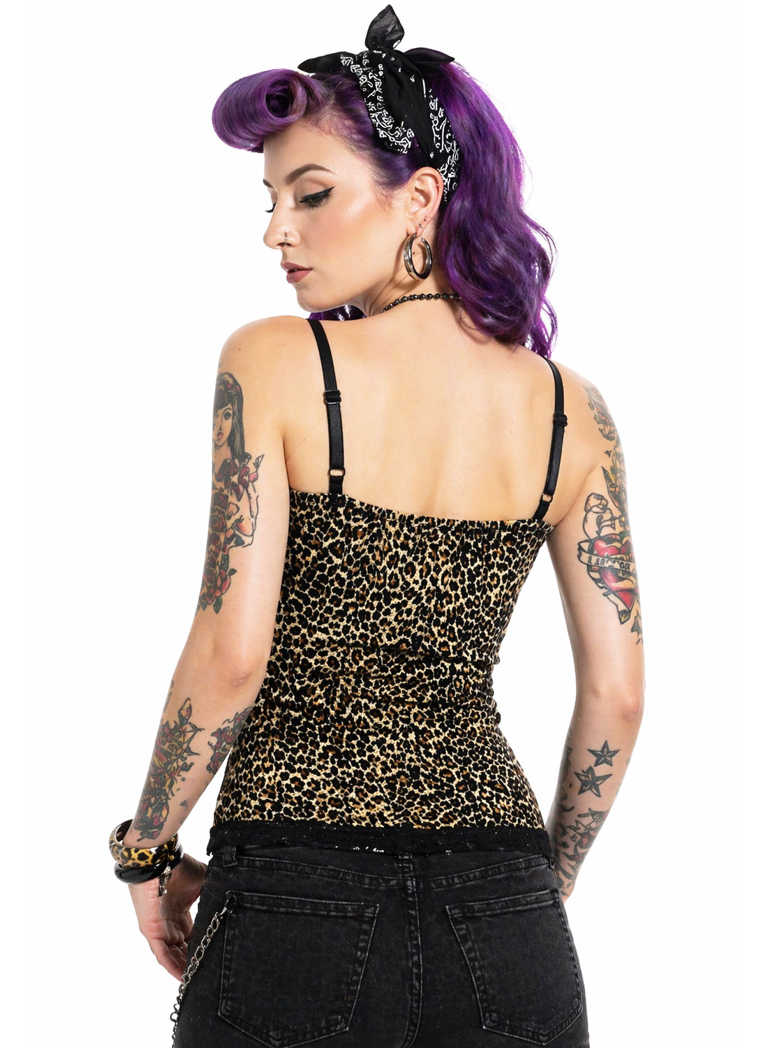 Släpp fram din vilda sida med Cat Scratch Fever Top – en leopardmönstrad bustier som kombinerar retro pin-up känsla med modern attityd. Den figurnära designen framhäver siluetten samtidigt som det stretchiga materialet ger en bekväm passform hela dagen (eller natten).