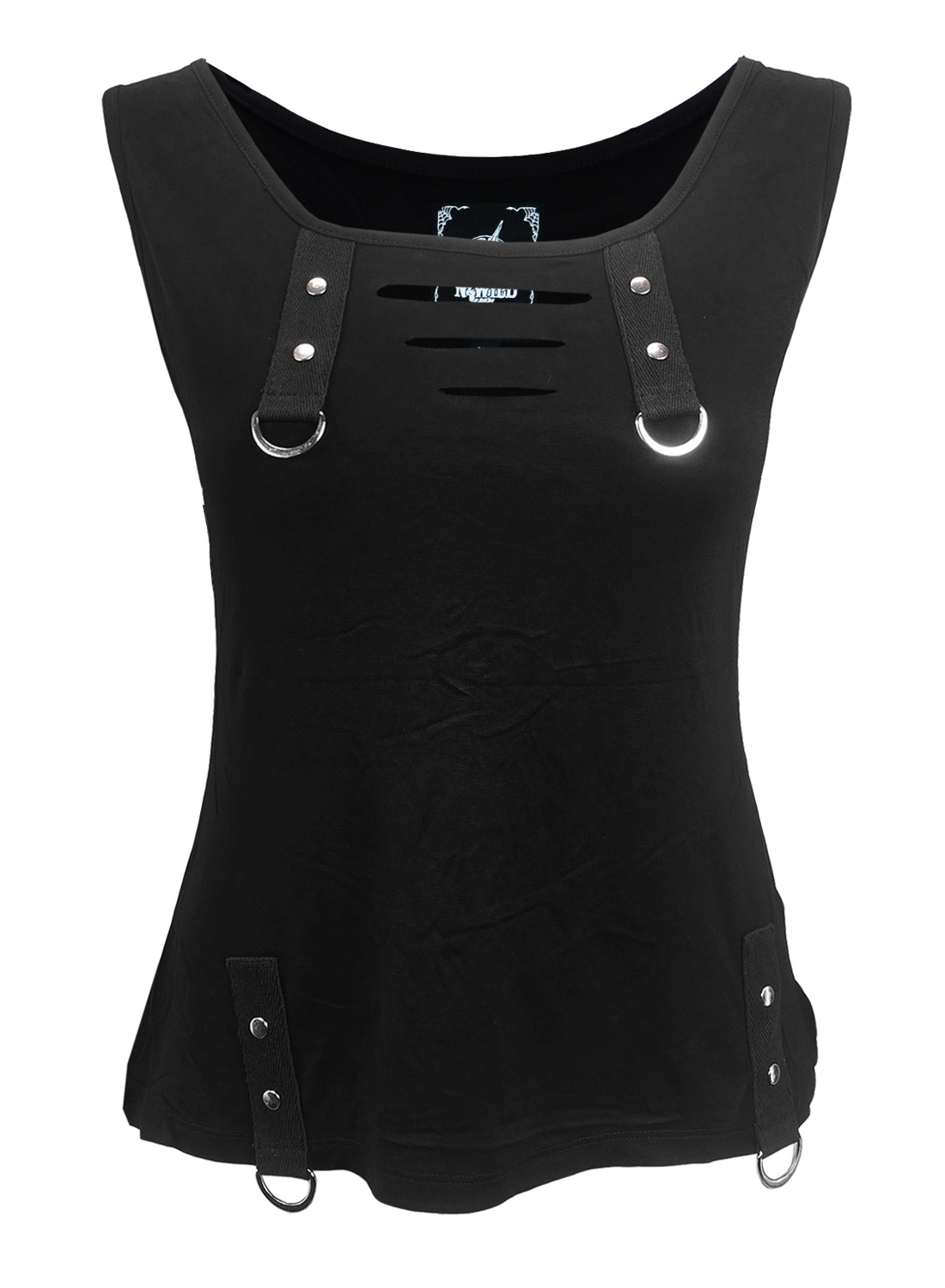 Industrial Rebel Tank Top- Svart linne med straps, nitar & edgy cut-outs I Alternativ Stil