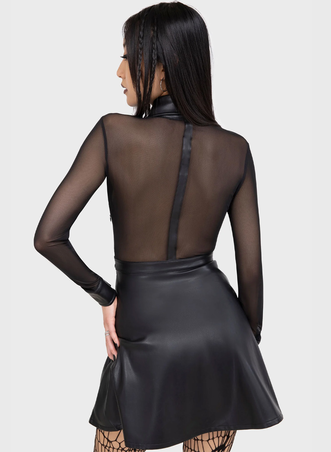 Killstar Shadowsinger Dress – mesh & PU klänning i fitted goth silhuett
